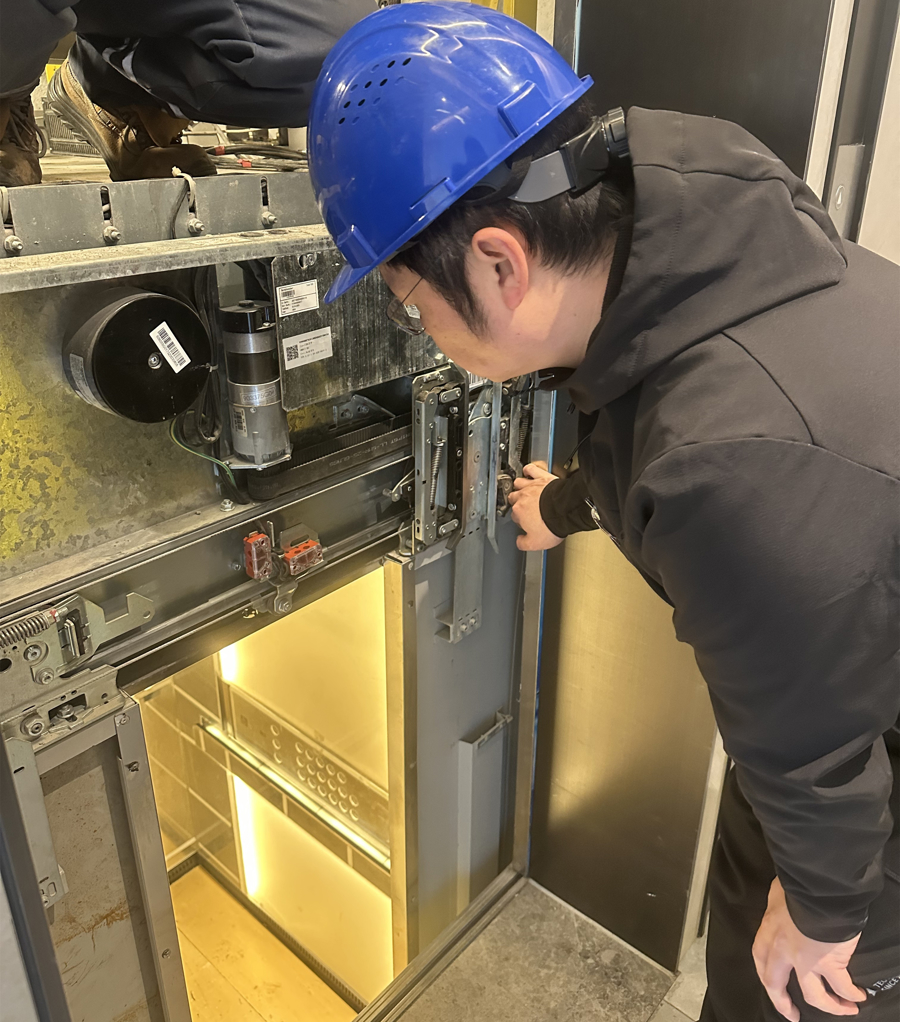 技术人员检查天悦雅园小区电梯情况。 闵行区市场监管局提供